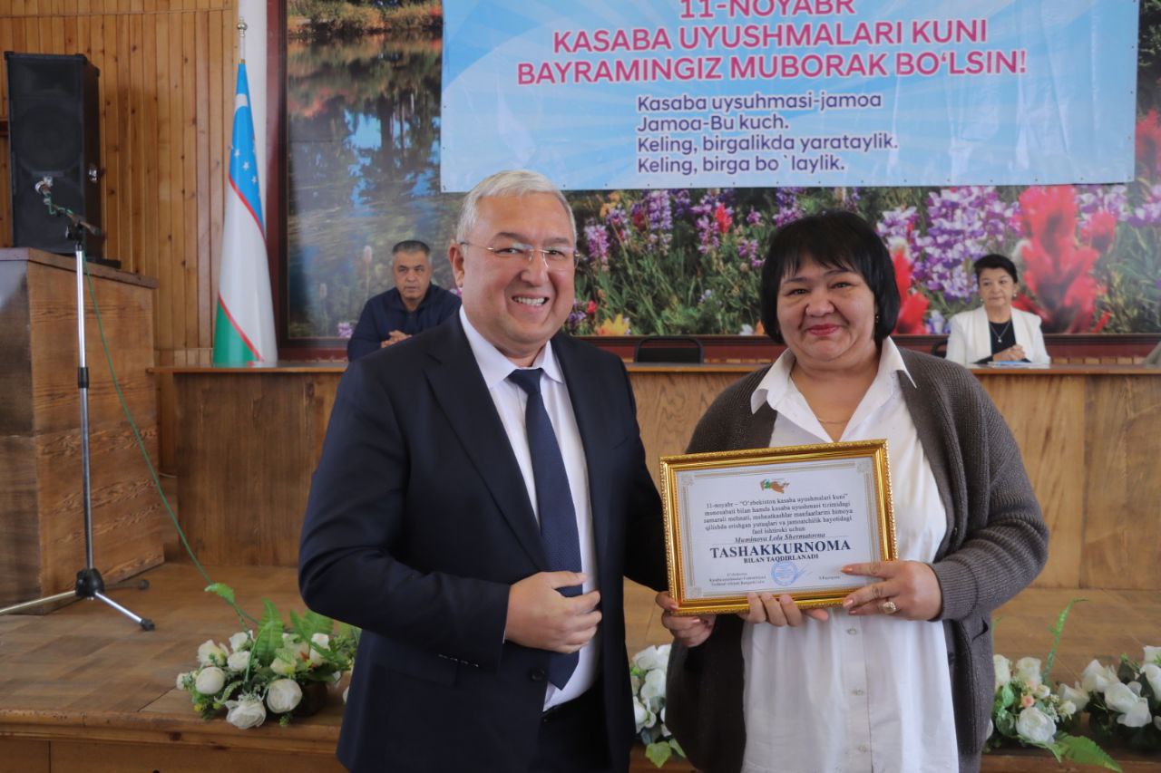 On November 11, in celebration of Uzbekistan’s Trade Union Day, a festive event was held at the “Uzbekcoal” Joint-Stock Company. The ceremony took place in the hall of the “Construction and Installation Works” branch, attended by the company’s executive staff, trade union activists from the branches, and employees.